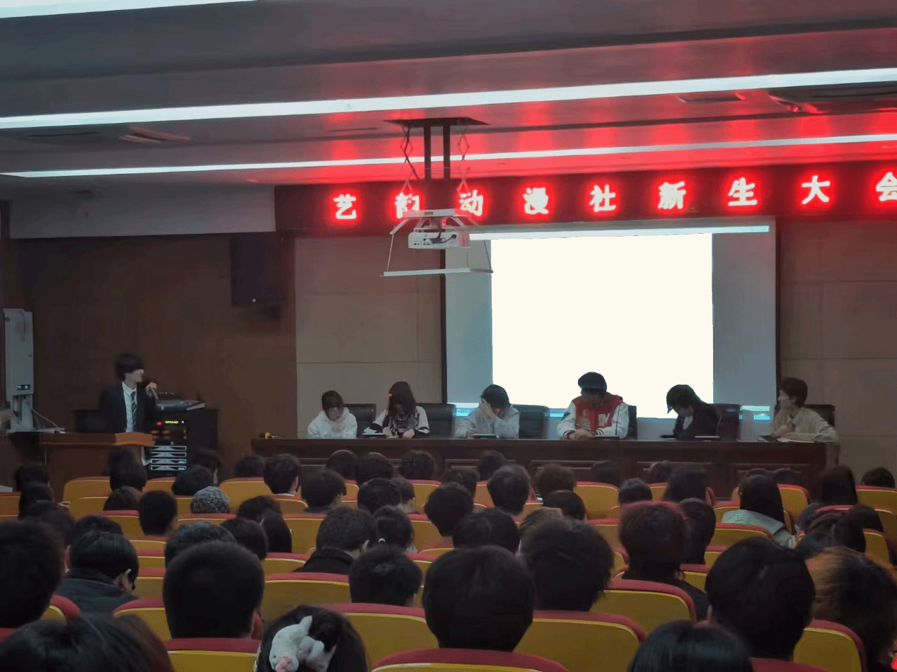 大会第一项,由社长时顺天简单介绍了社团。大会第二项,由各部门部长进行自我介绍及部门介绍。大会第三项,由副社长石新远讲述了艺韵动漫社未来的活动安排。
