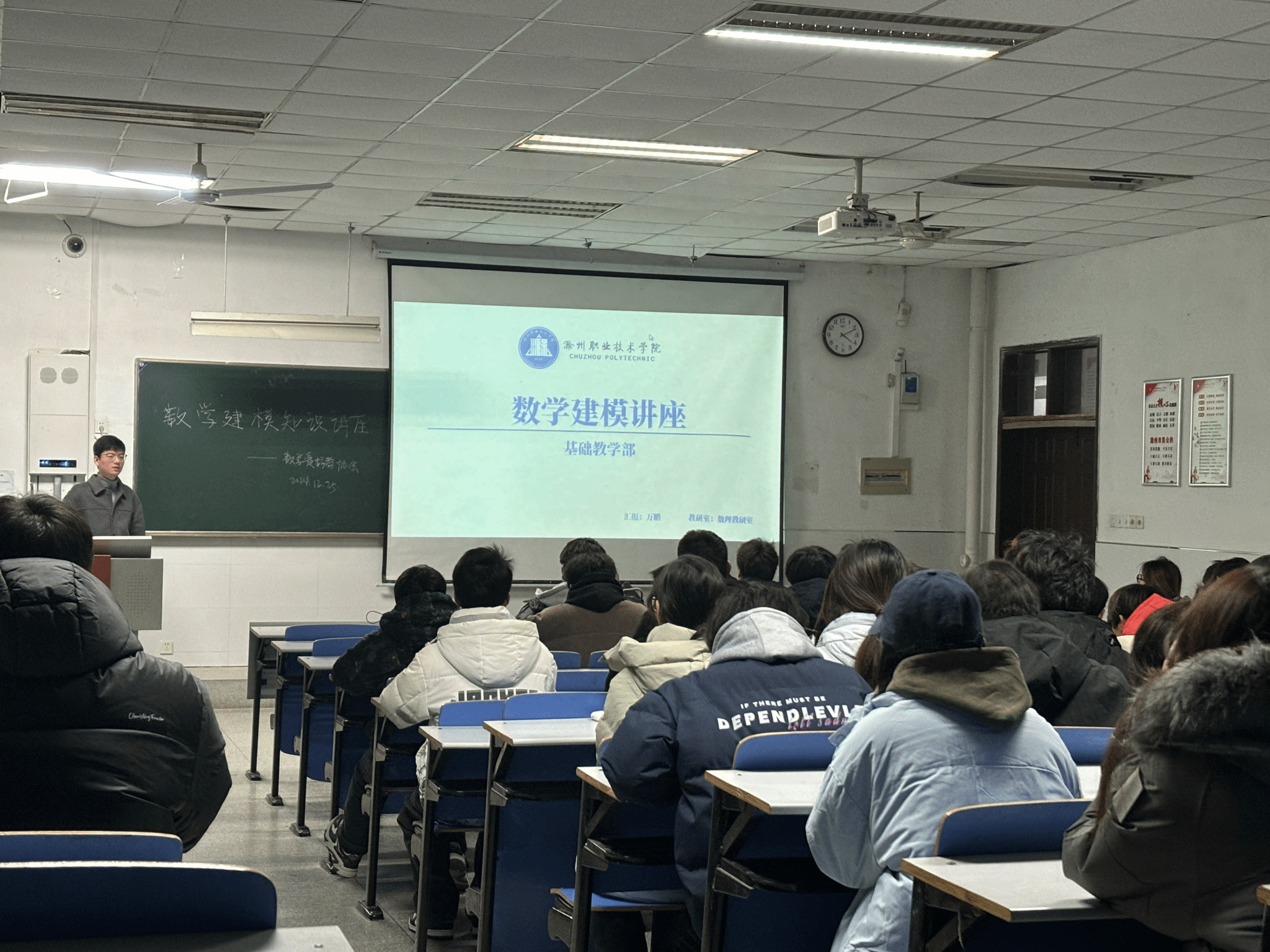 为了激发学生对数学建模的学习兴趣,培养学生的创新思维能力 ,推动新葡的京官网高等数学学习进程,数学爱好者协会于12月25日下午开展数学建模知识讲座。