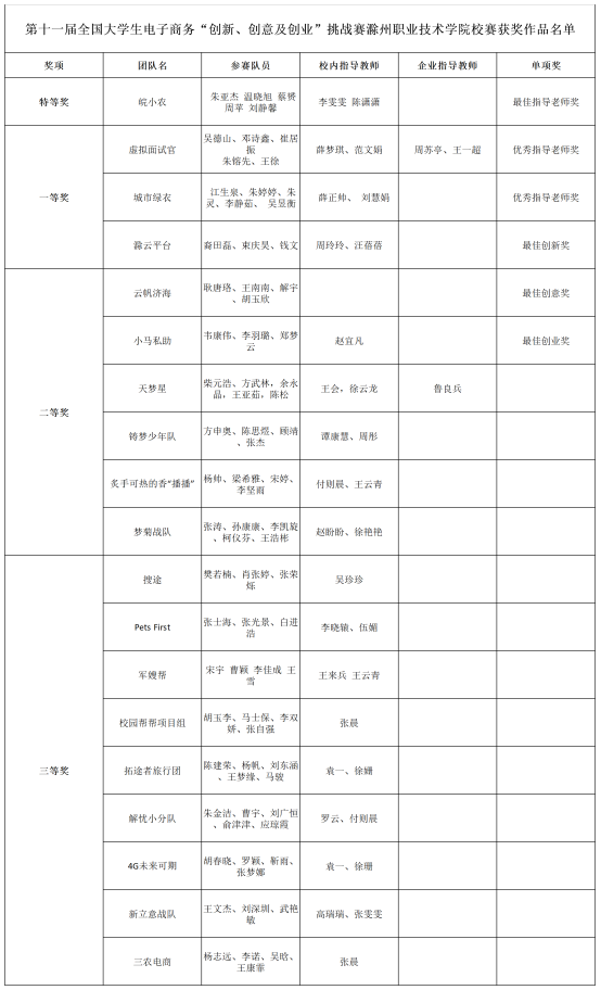 秉承公开、公平、公正的原则,经过评审组筛选评议,第十一届全国大学生电子商务“创新、创意及创业”挑战赛新葡的京集团35222vip校赛工作顺利结束。现将获奖名单予以公示,公示名单如下: