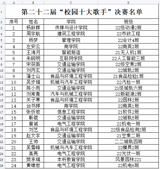 根据《关于举办第二十二届“校园十大歌手”比赛的通知》的要求,经评选,现将新葡的京集团35222vip第二十二届“校园十大歌手”决赛名单进行公示。