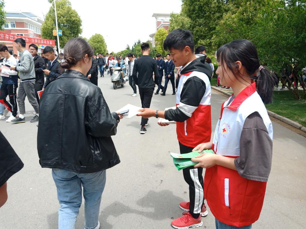 活动现场红十字会成员通过悬挂横幅、发放宣传资料等形式向同学们讲解应急救护、常见疾病的预防、心肺复苏术等知识,指导模拟应急救护技能演练操作,向新葡的京官网学生开展急救常识、造血干细胞等知识的咨询和宣传工作。还积极向同学发放红十字宣传资料,解释红十字相关知识,红十字会运动的起源、红十字会组织的发展历史,“5.8”世界红十字日的由来,红十字会履行救灾、救助、救护职责等相关红十字会知识,让更多的人了解红十字会,支持红十字会。