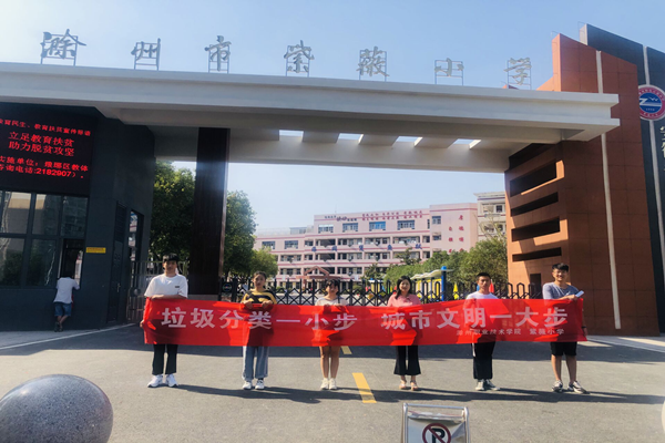 为了推动垃圾分类试点工作,进一步提高学生的垃圾分类减量意识,实现“教育一个孩子,带动一个家庭,文明整个社会”的教育理念,9月18日下午,新葡的京官网广播站在指导老师王蓓蓓的带领下到滁州紫薇小学开展垃圾分类知识进校园宣传活动。新葡的京官网广播站全体成员参加了本次活动。
