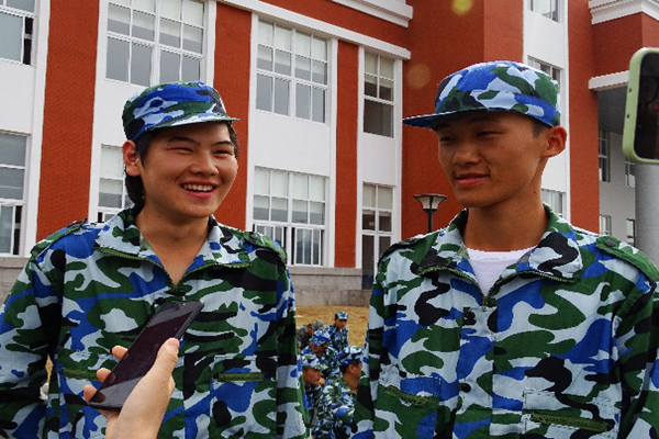 到达军训场地后就看到一个个整齐的方队正在进行紧张的训练。站军姿的,走正步的。训练场里新生们个个气势如虹,等到军训休息时间才对他们进行了采访。