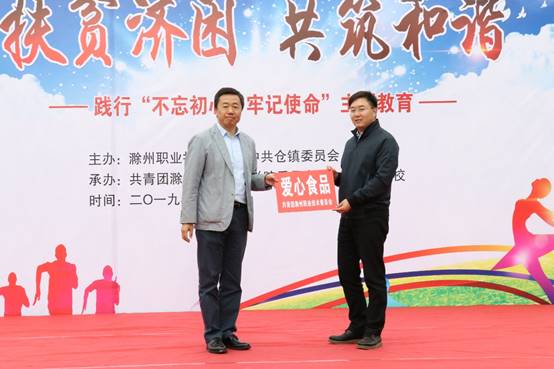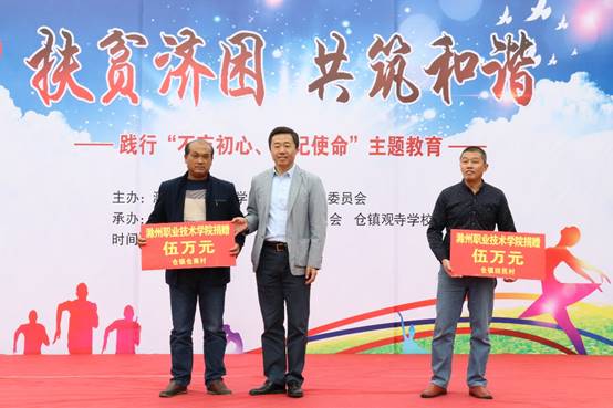 下午三点,新葡的京官网和仓镇观寺学校的学生为当地的村民、学生送上“扶贫济困 共筑和谐”的扶贫慰问文艺演出。演出中,仓镇党委副书记、镇长万小宇致辞。杨家庆代表新葡的京官网为仓镇苍南村和仓镇回民村各捐赠人民币五万元整,用于村内基础设施改善和公益事业建设。此外,学校还向当地捐赠爱心食品、书籍。