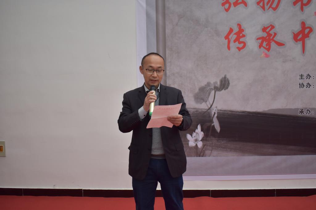张军首先致辞,他指出书画艺术是我国传统文化的瑰宝,书画之美需要用心去感受,他希望大家能够借此机会,更多地了解、热爱书画艺术。陆朝凤先生作为书画专家代表讲话,他认为全市老年书画爱好者在此集会意义重大,这不仅促进了书画爱好者之间的交流,还有利于在学生群体中弘扬、传承书画意义。吴涛对各位领导、专家的到来表示诚挚欢迎,他号召参会的学生积极与各位专家交流,感悟书画艺术的魅力。
