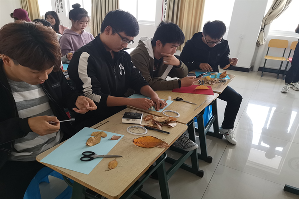 此次活动需要同学们自己去室外收集形状各异的树叶以及事先准备好的树叶发挥自己的想象力、创造力,根据自己所采集的不同形状的树叶创造出一幅幅栩栩如生的作品。最后由绿源环保协会、花艺社、红韵镂艺社和汽车协会四个社团指导教师以及负责人评委根据同学们对树叶画的创作、构思、想法,评选出一等奖一名,二等奖两名,三等奖三名以及参与奖若干。