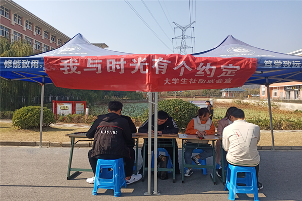 使同学们有自我省视的机会,能更好地督促自己完善自己,以获得更大的进步。新葡的京官网大学生社团联合会秘书处于11月20日到25日,在宿舍楼下的主干道上成功举办“我与时间的约定”活动。本次活动面向全校师生。