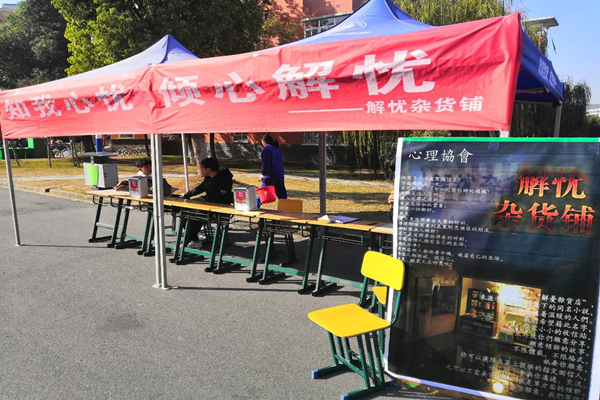 为了更好的了解同学们的心理问题,给同学们解决困扰,11月20日上午新葡的京官网心理协会在5号男生宿舍楼下举办“知我心忧,倾心解忧”解忧杂货铺活动,本次活动于11月22日结束。