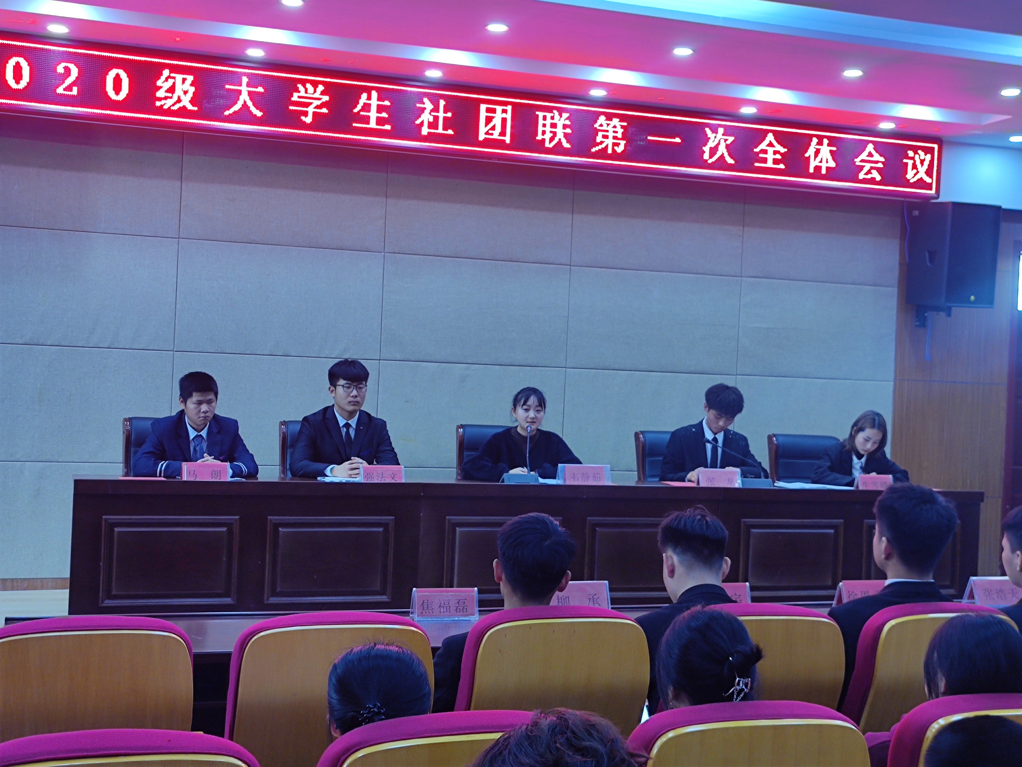 大会有以下几项议程:第一项,由主持人郝柳柳介绍到场嘉宾,新人进一步更好的对领导的认识,在座全体成员掌声不断热烈欢迎。第二项,由大学生社团联合会主席张龙发言,张龙主席对开学初期开展的社团招新组织活动工作总结,并提出社联各部门今后的工作要求与建议,并希望各个部门设立服务点,坚持值好每一次班,站好每一次岗。结合自身职责明确分工,针对管理社团,组织活动,经费管理等多个方面进行梳理总结。第三项,各部门部长分别上台介绍了部门主要职责,对日后的工作做出正确规划,并表示将全力以赴,以新的面貌为创建美好社联做出积极贡献。第四项,由社团代表广播站站长胡誉同学上台发言,简述了上届本社团工作报告及这届本社团的未来工作计划,并指出在社联同学的帮助下希望广播站未来发展的更好,促使社团联要团结、友爱互帮互助。第五项,由社联指导老师韦静茹发言,韦静茹老师对社团招新活动进行相应总结,肯定了社联各部门认真工作的态度以及社团招新缤纷如秀的精神风貌。并指出个别社团中存在的问题和不足。针对社联会议内容,向相关社联部门负责人及社团负责人作出具体要求和安排部署。希望社联各部门积极发挥自己职责,主动深入社团,了解社团。同时希望各部长树立目标,保持热情,带领新成员互帮互助,团结一致为社联发展做出积极贡献,继续传承社联精神。