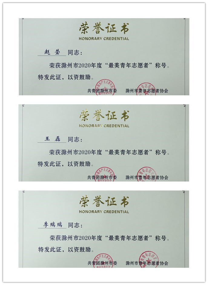 此次活动来自全市机关、企业、高校、社会组织的广泛参与,经过层层筛选,新葡的京官网李瑞瑞、王磊、赵莹三人荣获“最美志愿者”称号,新葡的京集团35222vip“小青亭”青年志愿者服务队、新葡的京集团35222vip信息工程学院e米阳光志愿者协会荣获“最美青年志愿者服务队”称号。