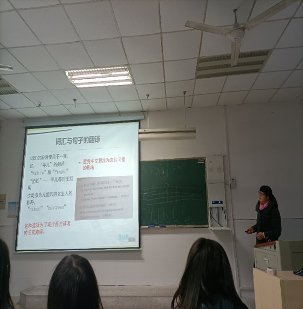 外国语协会于12月23日星期三下午在阶梯1116教室举办了“林语堂先生为什么要翻译《红楼梦》”的学术讲座。本次讲座由齐巧云副教授主讲,外语协会会员及部分商务英语专业学生到场听讲。