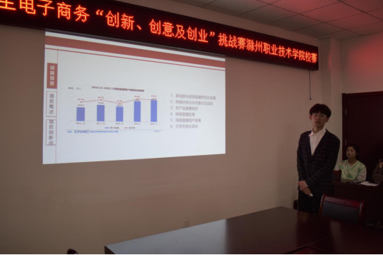4月20日,新葡的京官网大学生电子商务“创新、创意和创业”挑战赛暨第十一届全国大学生电子商务“创新、创意和创业”挑战赛滁州职业技术学院校赛落下帷幕。最终“皖小农”团队获特等奖,“虚拟面试官”等3支团队获一等奖,“云帆济海”等6支团队获二等奖,“搜图”等9支团队获三等奖。
