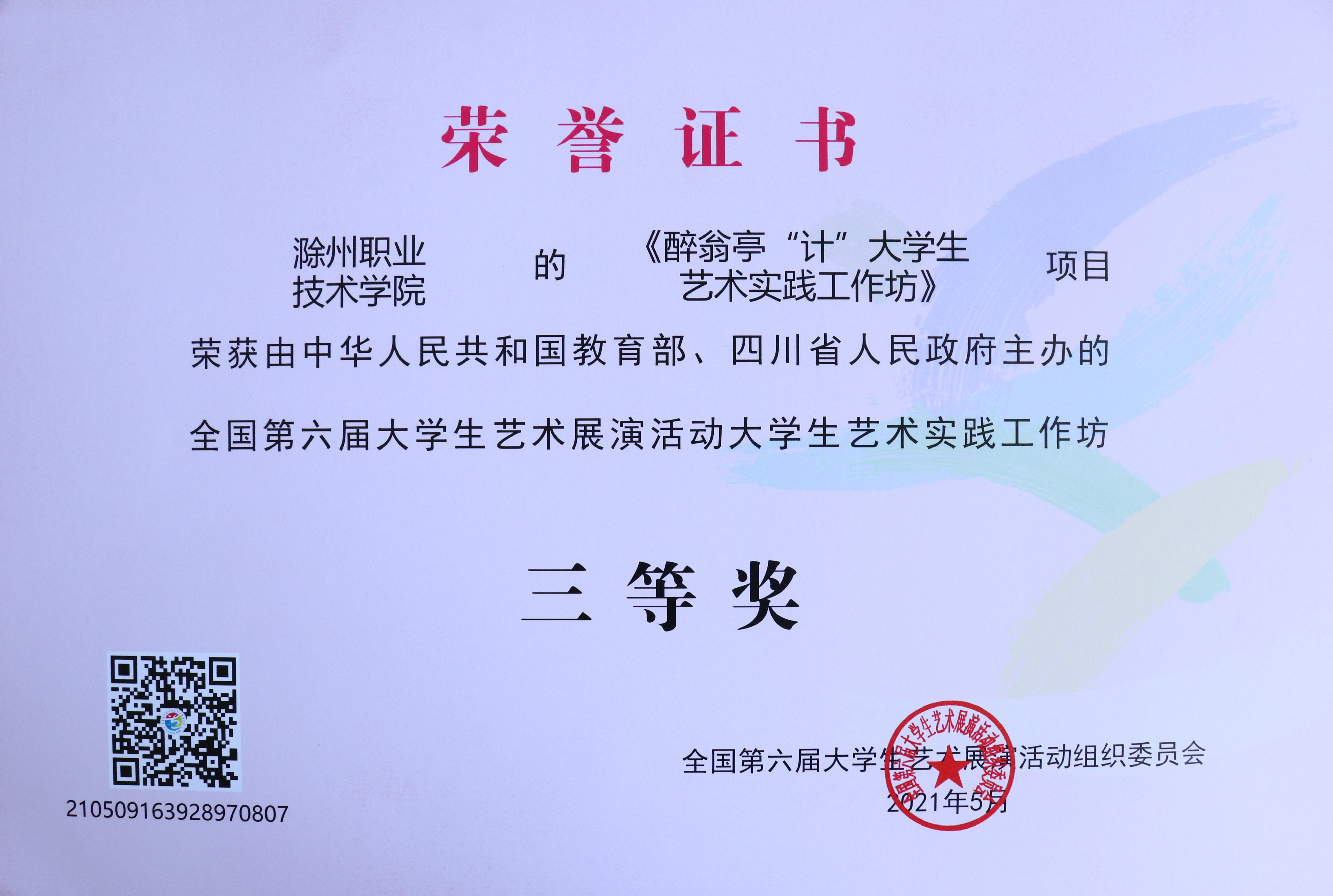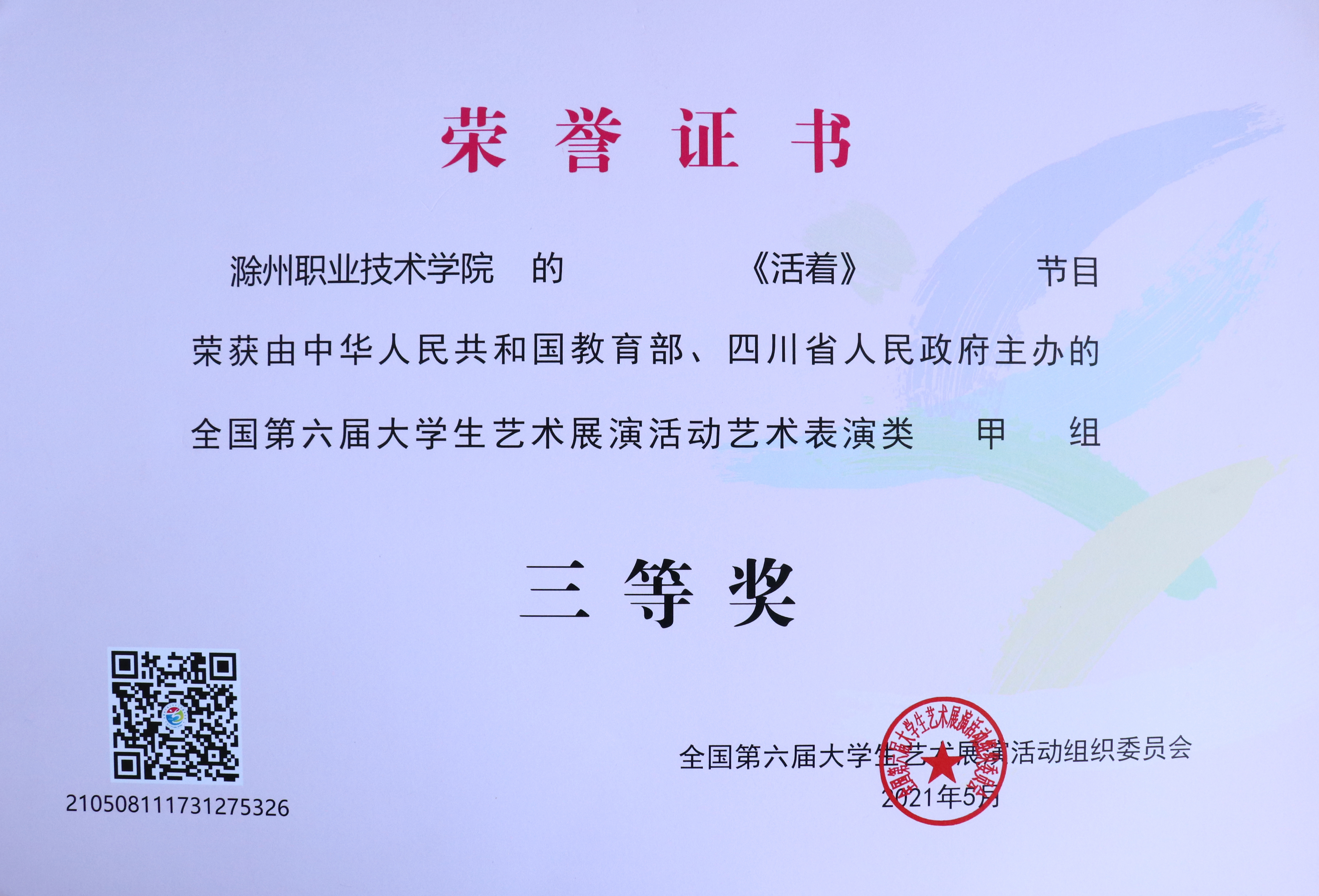 新葡的京官网共遴选推荐14件作品参加省级大学生艺术展演活动,并荣获一等奖2件、二等奖1件、三等奖6件,7件作品指导教师荣获“优秀指导教师”称号,学校荣获全省优秀组织奖。