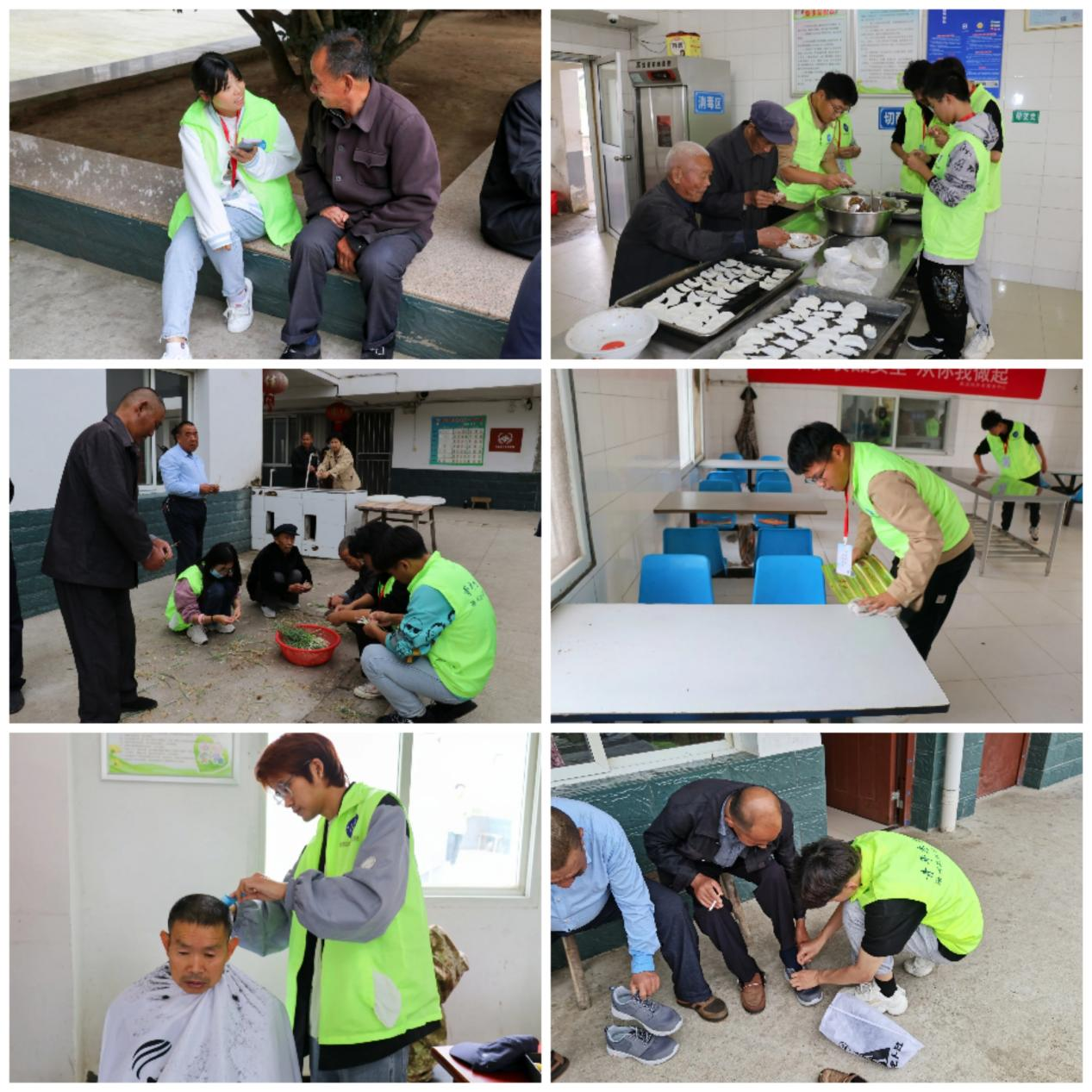 在前往黄泥岗敬老院之前,志愿者们首先收集了老人们鞋子的码数,为老人们准备了鞋子,并且带上了饺子皮和饺子馅。在到达敬老院后,17名志愿者迅速进行了分工,其中2名理发师志愿者负责给老人理发,其他15名志愿者有的在院子里陪老人们拉拉家常、讲讲笑话,给老人们带去欢笑和快乐;有的帮助老人整理内务,打扫卫生,捶捶背;有的在食堂和老人一起包饺子,志愿者们和老年人们相处的其乐融融。看到老人们灿烂的笑容,听到老人们爽朗的笑声,志愿者们纷纷表示充分体会到了本次志愿活动的意义所在。