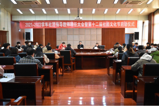 11月10日下午,新葡的京官网2021-2022学年度社团指导教师聘任大会暨第十二届社团艺术节启动仪式在综合楼11楼会议室召开。校党委副书记杨家庆、校团委书记朱婷婷、各社团指导教师以及各社团负责人参加了会议,大会由校团委书记朱婷婷主持。