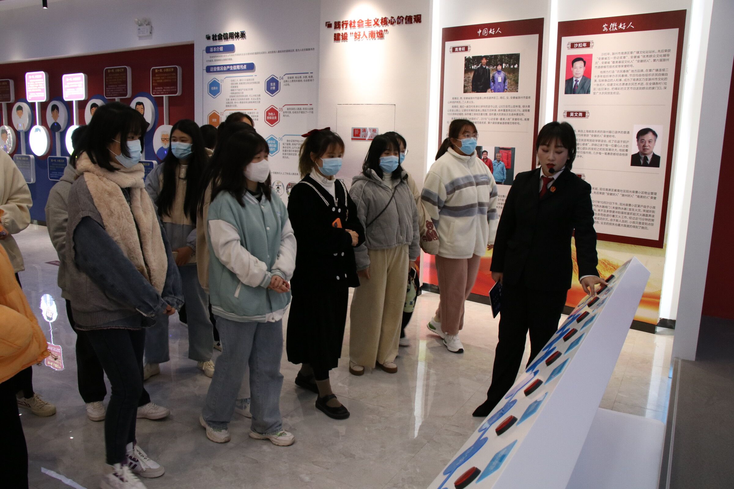 在法制教育基地,同学们认真听取工作人员的讲解。首先参观了乌衣法院的立案庭、信访接待室、羁押室、法庭、反腐倡廉长廊、毒品展示区等场所。随后集体观看了乌衣法院宣传片,使大家对乌衣法院的审判工作、司法改革、多元化纠纷解决机制、司法便民服务等工作情况有了全面的了解。最后同学们参观了南谯区法治教育体验馆,该馆内设序厅、大国方针、法伴一生、护蕾成长与尾厅等5个主题展区。尤其在护蕾成长展厅,通过生活情景模拟的形式将生活中存在的法律问题展现出来,进一步加深了同学们对身边法律法规的认识。