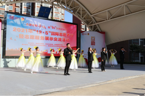 12月3日下午,新葡的京官网青年志愿者、大学生艺术团以及春之声合唱团参加由滁州市文明办、滁州市民政局、共青团滁州市委主办,南谯区新时代文明实践中心、南谯区新时代文明实践志愿服务总队承办的“12·5”国际志愿者日暨志愿服务展示活动。