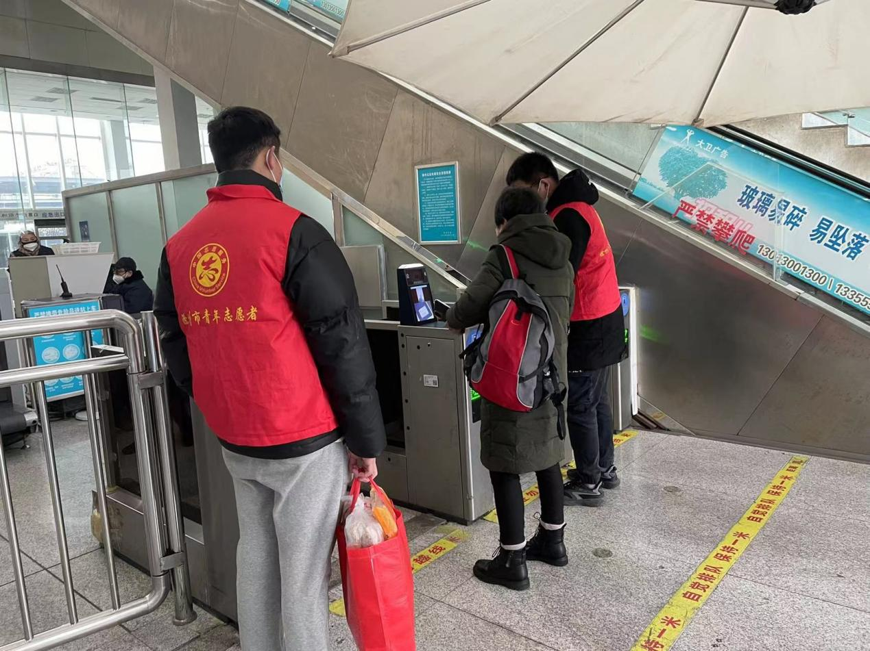 20会计7班曹文虎同学是一名充满爱心的青年,寒假刚开始,他就报名参加了“暖冬行动”志愿服务。正值“春运”高峰期,他坚守在滁州北站进、出站口,提醒乘客们正确佩戴口罩,注意疫情防控措施,并热情地帮助过往旅客解决问题和困难。他认为参加志愿服务活动,不仅能够让自己迅速成长,更能够让他人感受到来自身边的温暖与善意。
