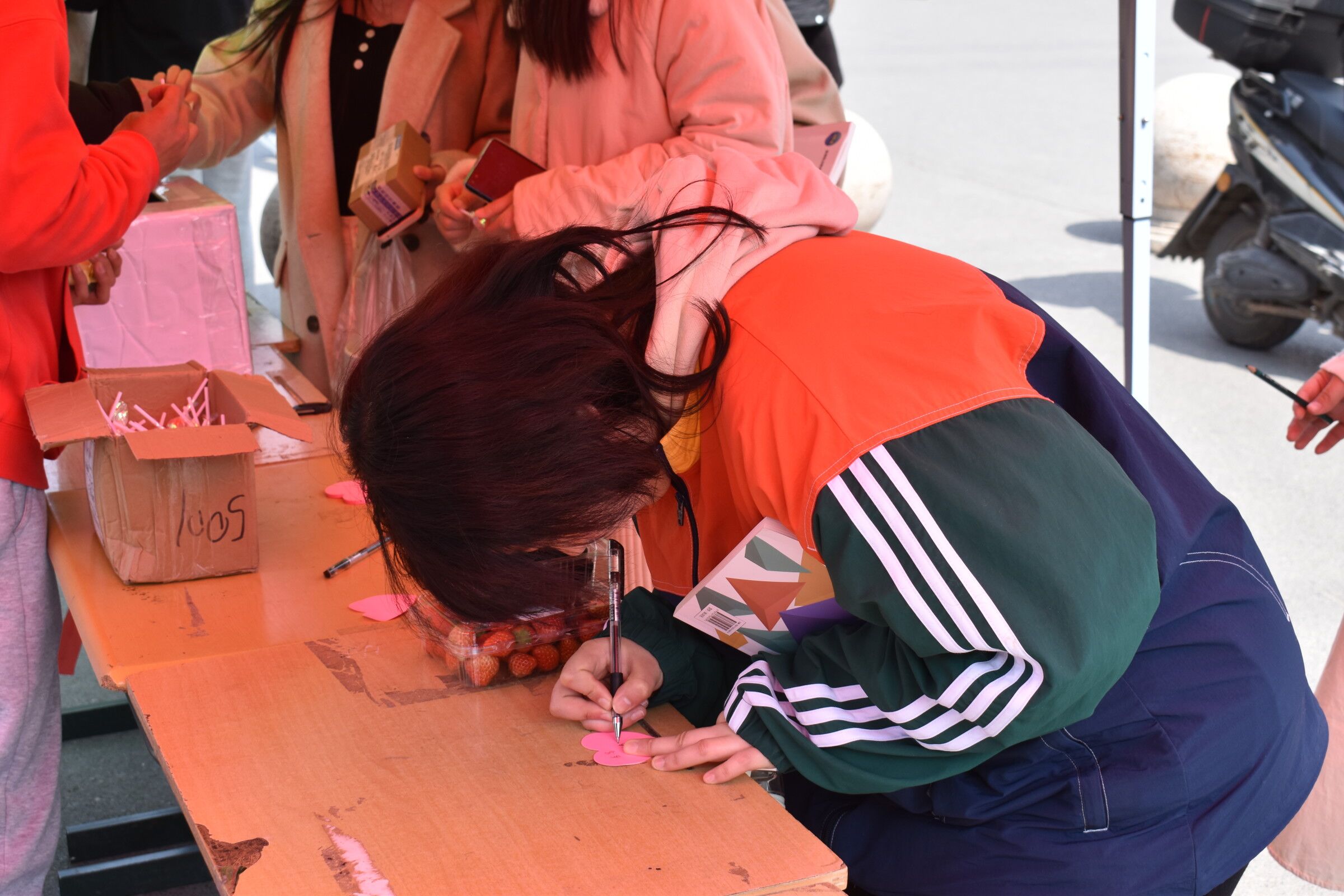 3月7日早上8点,学生会工作人员就开始在女生宿舍主干道搭建帐篷,为此次活动的顺利开展做准备。此次活动主要包括“心愿便利贴”、“祝福板”、“趣味小抽奖”等环节。在“心愿便利贴”环节中,女生可以在祝福板上贴上自己的愿望期许或美好祝福,学生们踊跃参与并纷纷留言写下自己的心愿,“希望被送一盒草莓”、“希望收到生日祝福”、“希望能交新朋友”等等,活动现场热闹非凡。