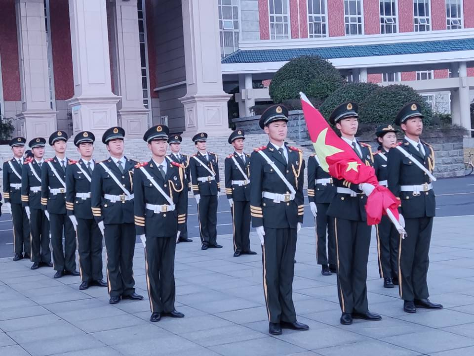 2022年3月14日早上,新葡的京集团35222vip国旗护卫队全体队员举行雷锋月主题活动升旗仪式。
