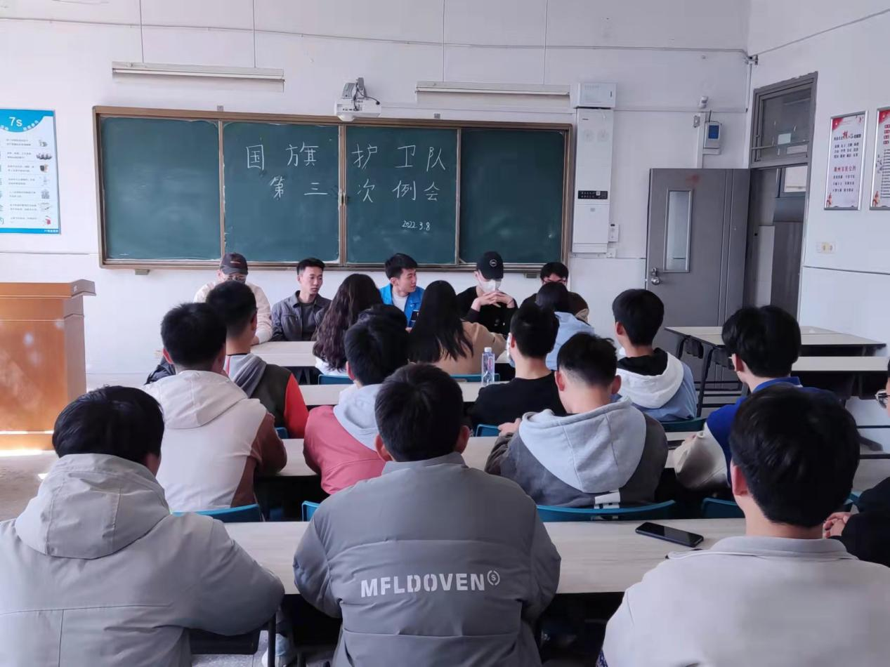 2022年3月8日中午,新葡的京集团35222vip国旗护卫队全体成员在4321教室召开本学期第三次例会。