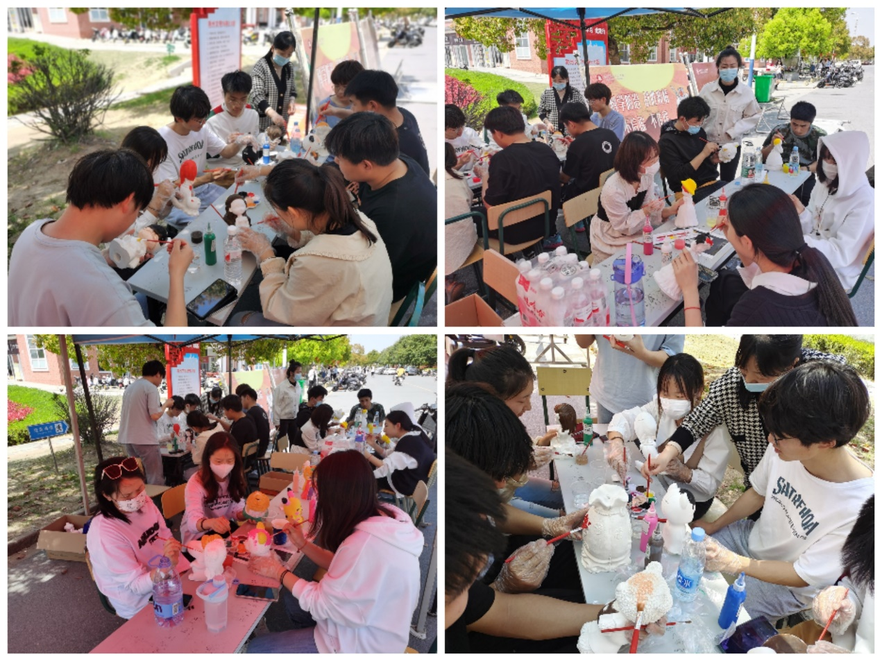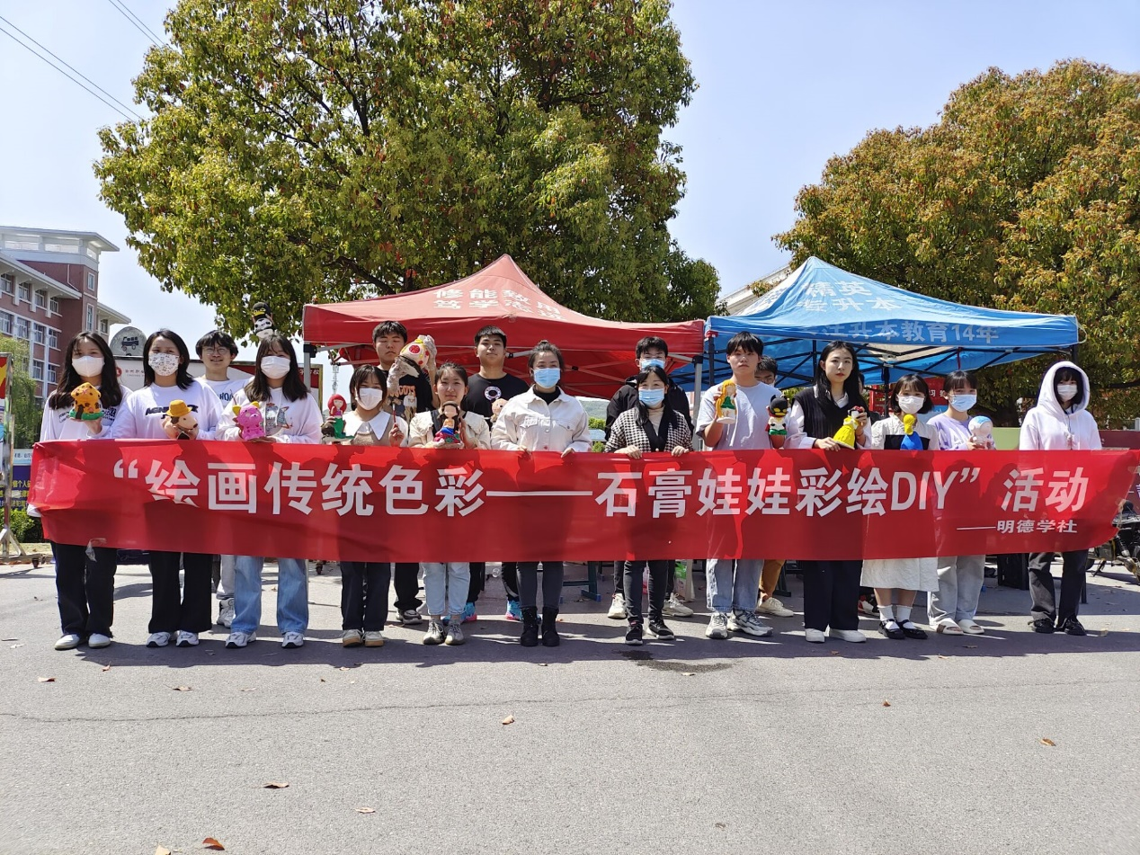 在疫情防控期间,为丰富同学们的课余时光,缓解生活与学习中的压力。校明德学社在2022年4月8日中午于宿舍楼下开展了绘画传统色彩——石膏娃娃彩绘DIY”活动。