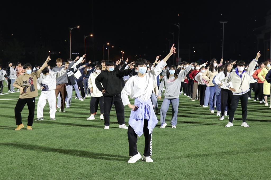 活动正式开始前,社联干部组织各位同学前后保持1米的间距,并全程戴好口罩。活动伴随着《日不落》、《小苹果》等经典广场舞曲目的播放拉开了序幕。大学生艺术团的成员和社联文艺部交替着领舞,从同学们喜闻乐见的《姐就是女王》,到全民推崇的健身操,大家都全身心投入。正当活动如茶似火的进行时,不少的老师和宿管阿姨们也纷纷加入。他们的舞姿丝毫不弱领舞的社团成员,成为活动中的一大亮点。