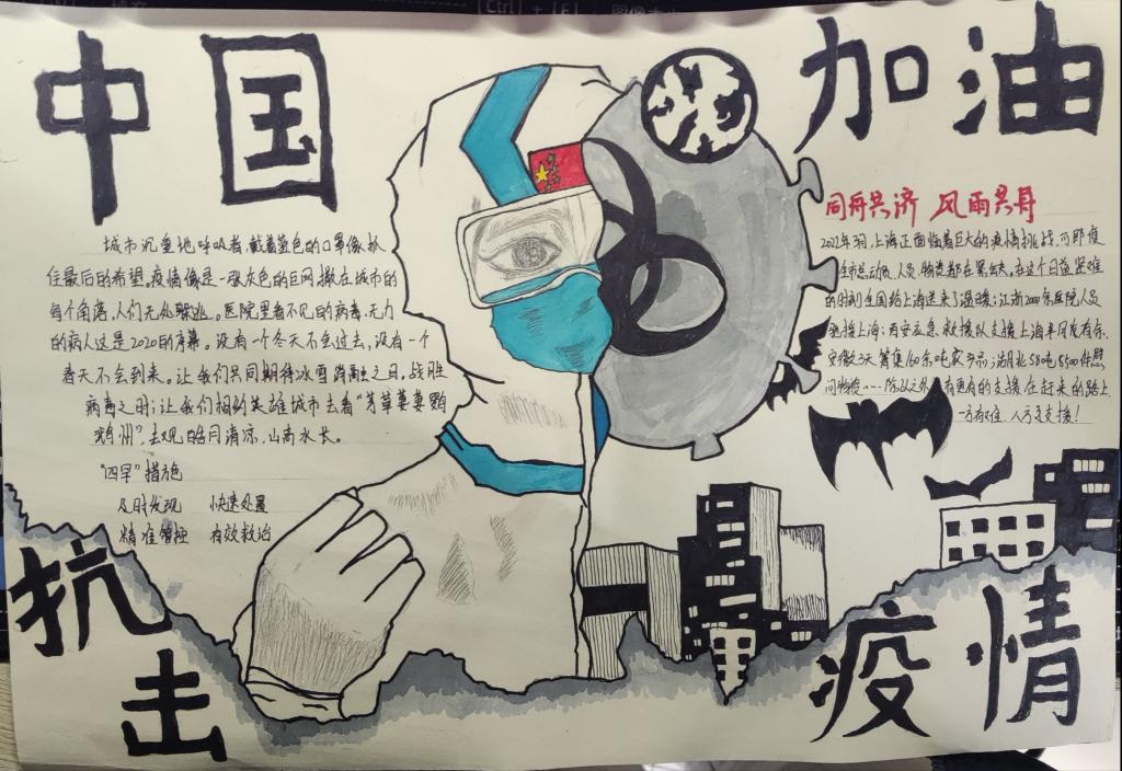 疫情之下,全国一心,众志成城,同心抗“疫”。在这场看不见硝烟的保卫战中,各大高校的青年学子应声而至,以行动践行初心使命,由学生处主办、心理协会承办,组织开展“同心同力共抗‘疫’”手抄报手绘画征集评选活动。