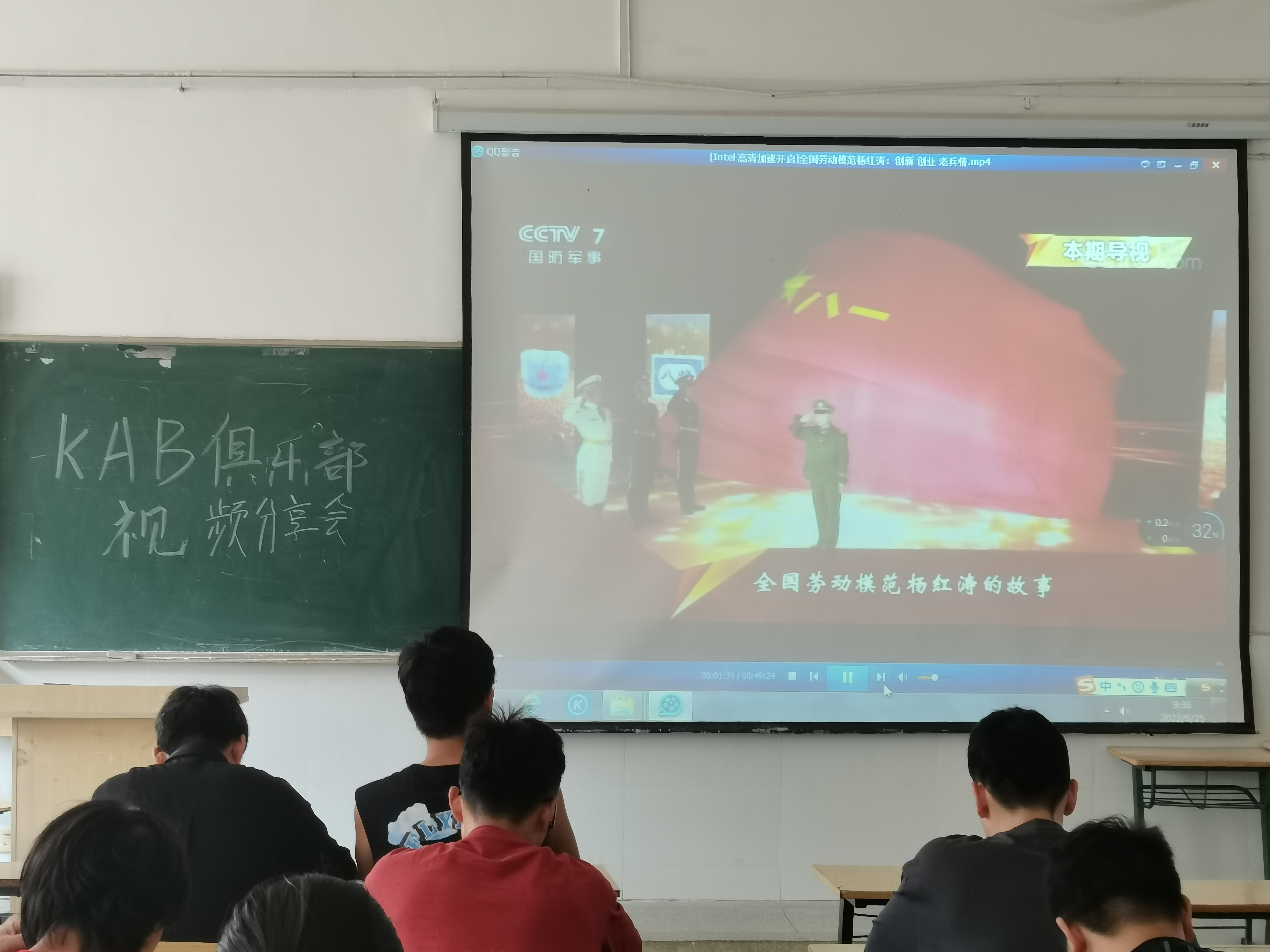 社团负责人说明了活动具体内容及要求,接下来所有参与人员一起观看了《全国劳动模范杨红涛:创新创业 老兵情》。通过观看退伍老兵的创新创业的视频,社员们真切的感受到杨洪涛在创业初期经历了不少的曲折,深受触动。