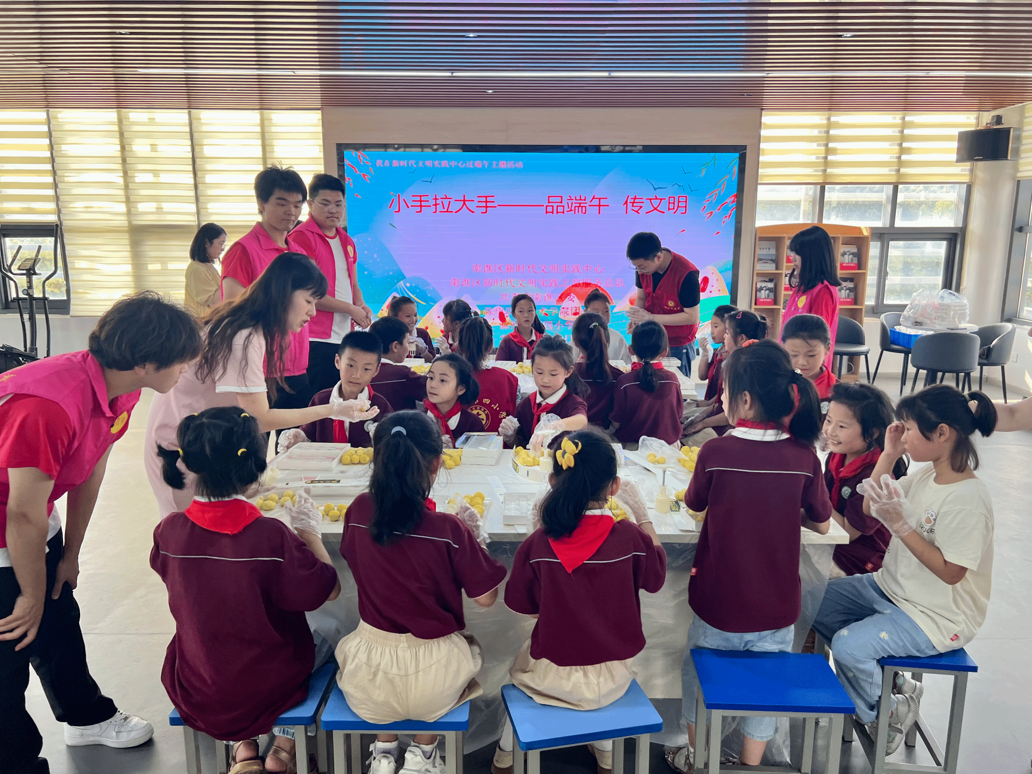 为深入贯彻落实中共中央办公厅《关于培育和践行社会主义核心价值观的意见》和教育部《完善中华优秀传统文化教育指导纲要》等文件精神,引导青年学生在社会实践中增强使命意识,培养学习优秀传统文化的兴趣,提高劳动技能。在6月20日当天,由南谯区新时代文明实践中心、南谯区新时代文明实践志愿服务总队、共青团南谯区委、新葡的京集团35222vip团委及滁州市第四小学主办的“小手拉大手——品端午 传文明”了解传统节日、学做绿豆糕活动在南谯区新时代文明实践中心成功举办。