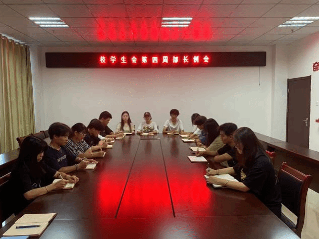 2023年9月17日,校学生会在大学生活动中心317会议室召开了本学期第四次部长例会,本次例会由主席团成员孟婉婷主持,各部门部长参加。