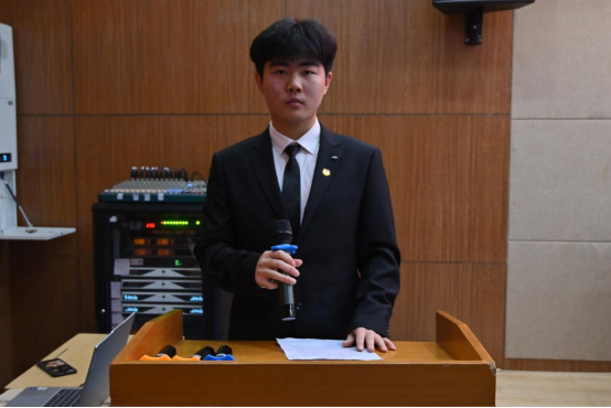 2024-2025学年青马班学员代表缪子豪同学发言,他代表全体新学员表态,要深入学习、积极实践、勇担使命。