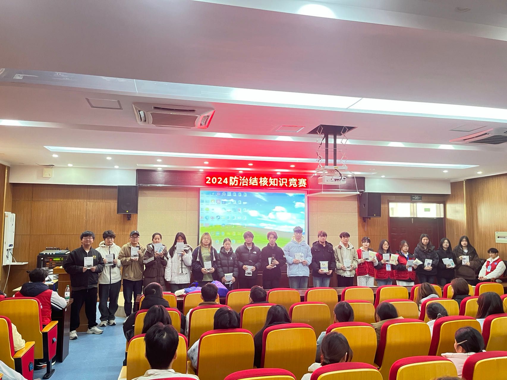 竞赛过程中,团委老师精心准备的题目涵盖了结核病的预防、症状、治疗等多方面知识。参赛队员们热情高涨、全神贯注,凭借扎实的知识储备和敏捷的思维能力依次作答,竞争激烈,展现出了对结核病防治知识的深入了解和高度重视,精彩表现赢得阵阵掌声。
