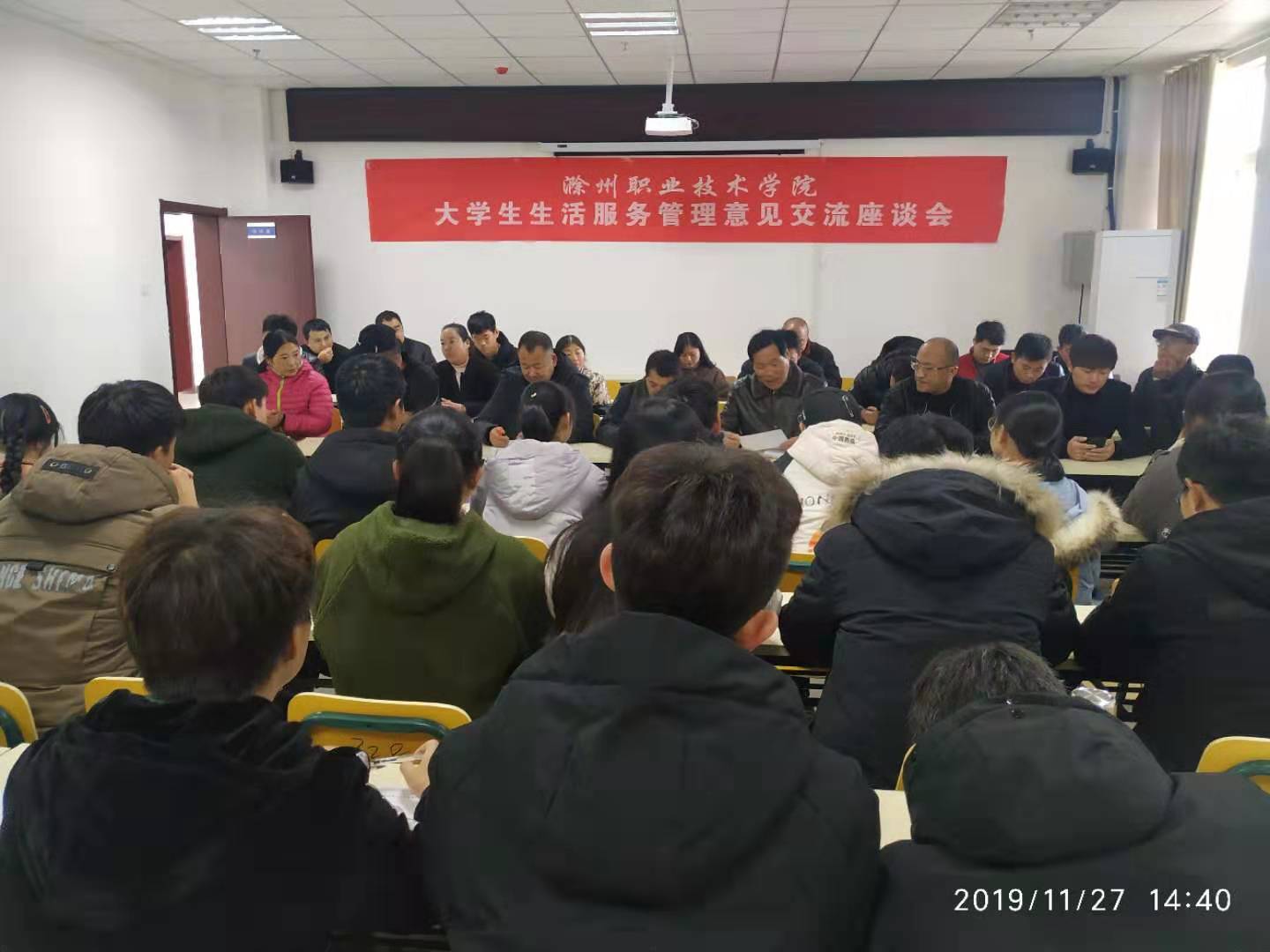 为提高后勤保障能力和服务水平,20191127日下午,后勤服务中心召开后勤服务工作学生座谈会,后勤管理人员、食堂、宿舍浴室、物业、超市、开水器、洗衣机等经营户及各年级学生代表共60余人参加会议,会议由餐饮科胡永光老师主持。