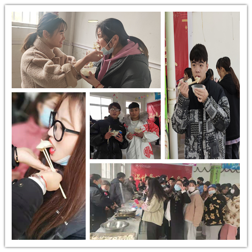 活动中,窗外是北风浮面、寒意袭人,活动现场却是热闹非凡、欢声笑语。公寓阿姨们和同学们一起揉面、擀面皮、包饺子,拉家常,每个人都乐在其中,现场欢乐气氛热闹而高涨。另一边,同学们排着长长的队伍,井然有序的等着盛饺子、吃饺子。看着同学们领到的一碗碗裹满爱意的饺子,一张张笑容灿烂的面容,热气腾腾的饺子吃进他们嘴里,暖在他们的心中。