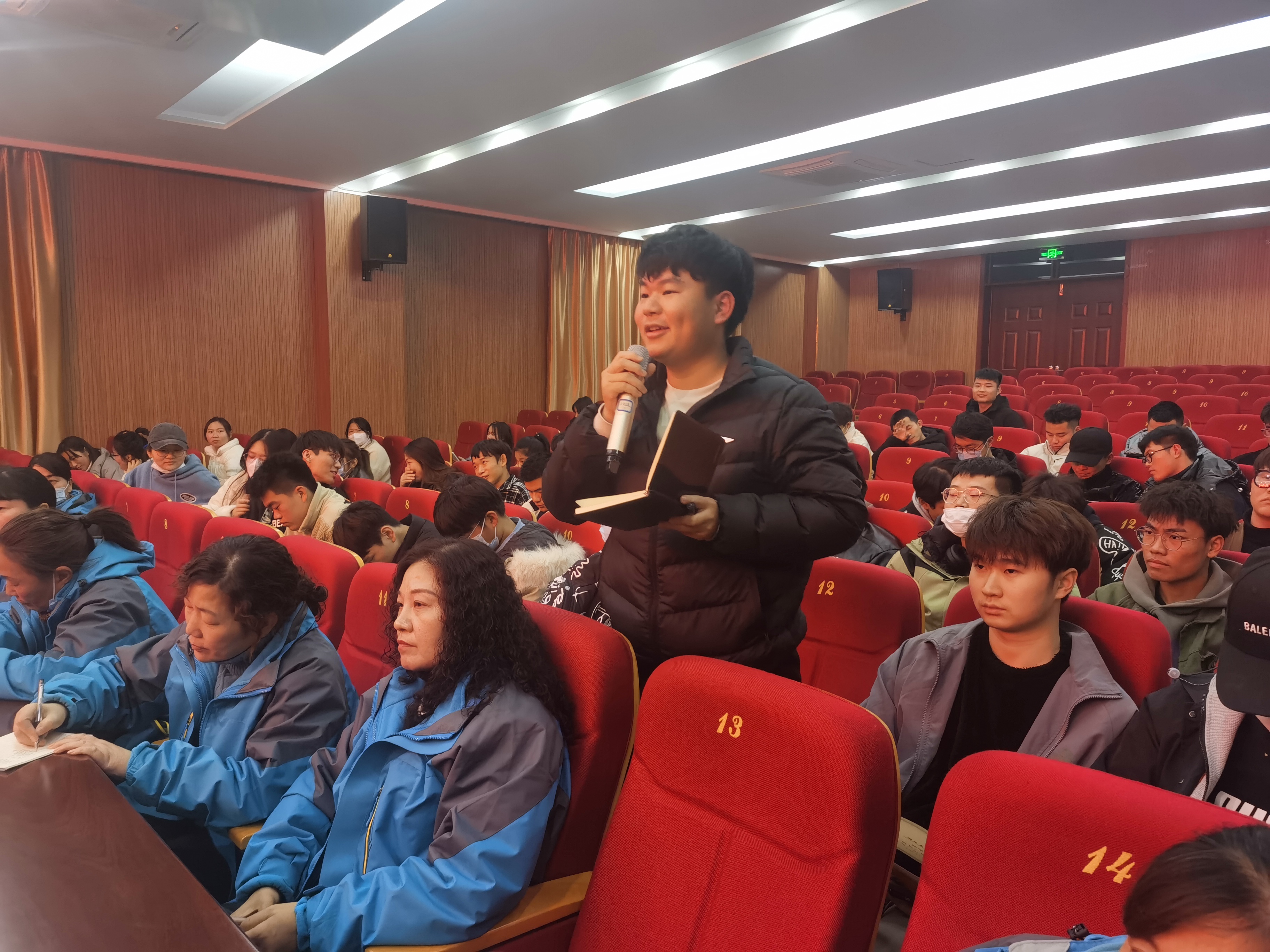 表彰大会结束后,开展了学生座谈会。会上,同学们踊跃发言,就学生宿舍夜间关门时间、6s管理、楼内开水器、洗衣机、电动车车位及充电桩等方面问题提出了相关建议,陆凤林对学生们反映的问题逐一进行解答和说明,对于部分超出职责范围的问题,也表示将汇总后及时报送相关部门。