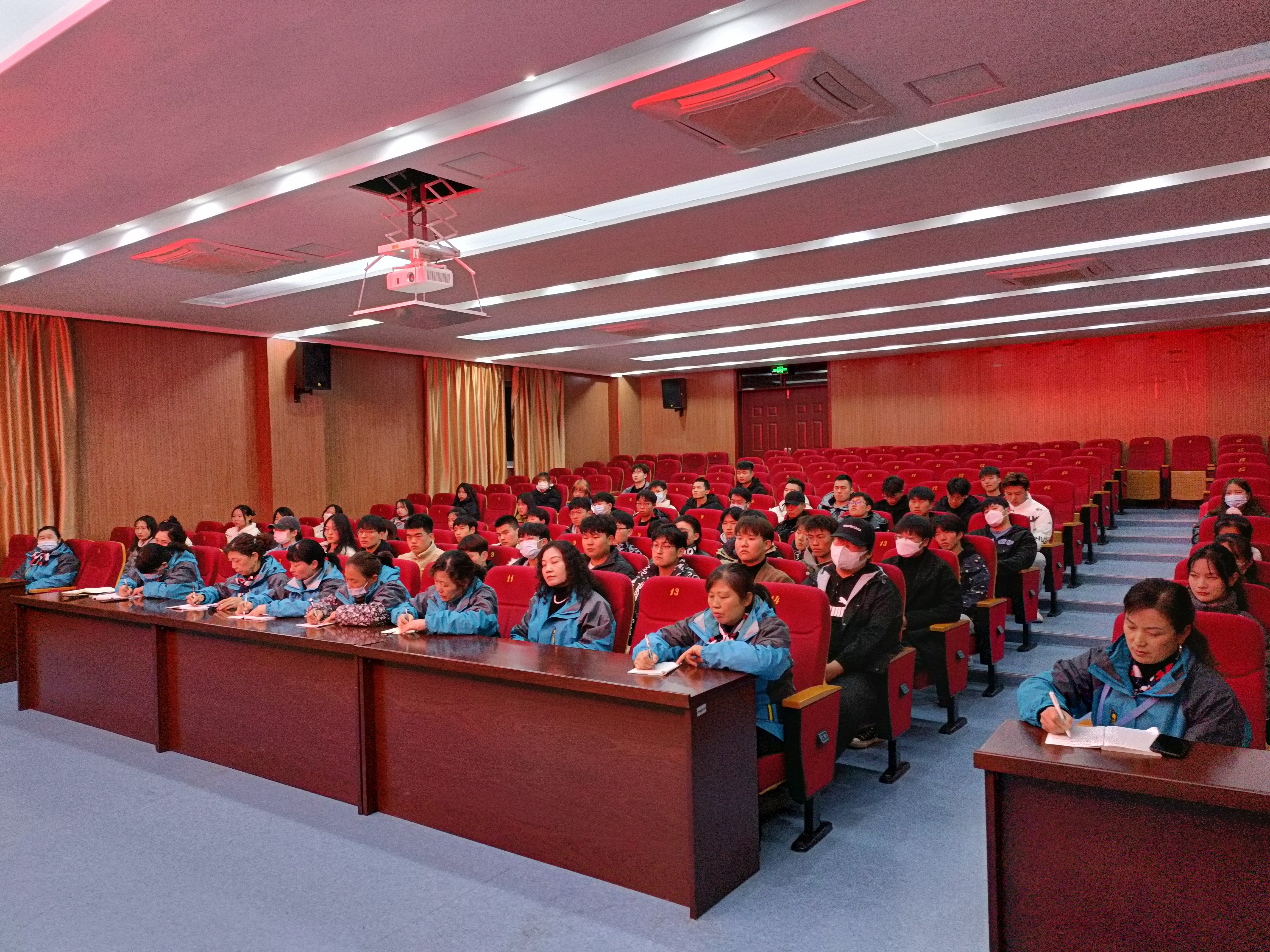 为进一步做好学生服务工作,加强与学生群体的交流和沟通,129日晚19时,后勤服务中心公寓管理科在南阶205教室召开2021年度学生公寓6s管理工作座谈会暨学生楼层长换届表彰大会。公寓管理科陆凤林科长,万顺物业项目经理梁发妹,公寓中心主任朱明春及相关人员和学生代表80余人参加了会议,会议由公寓中心主任朱明春主持。