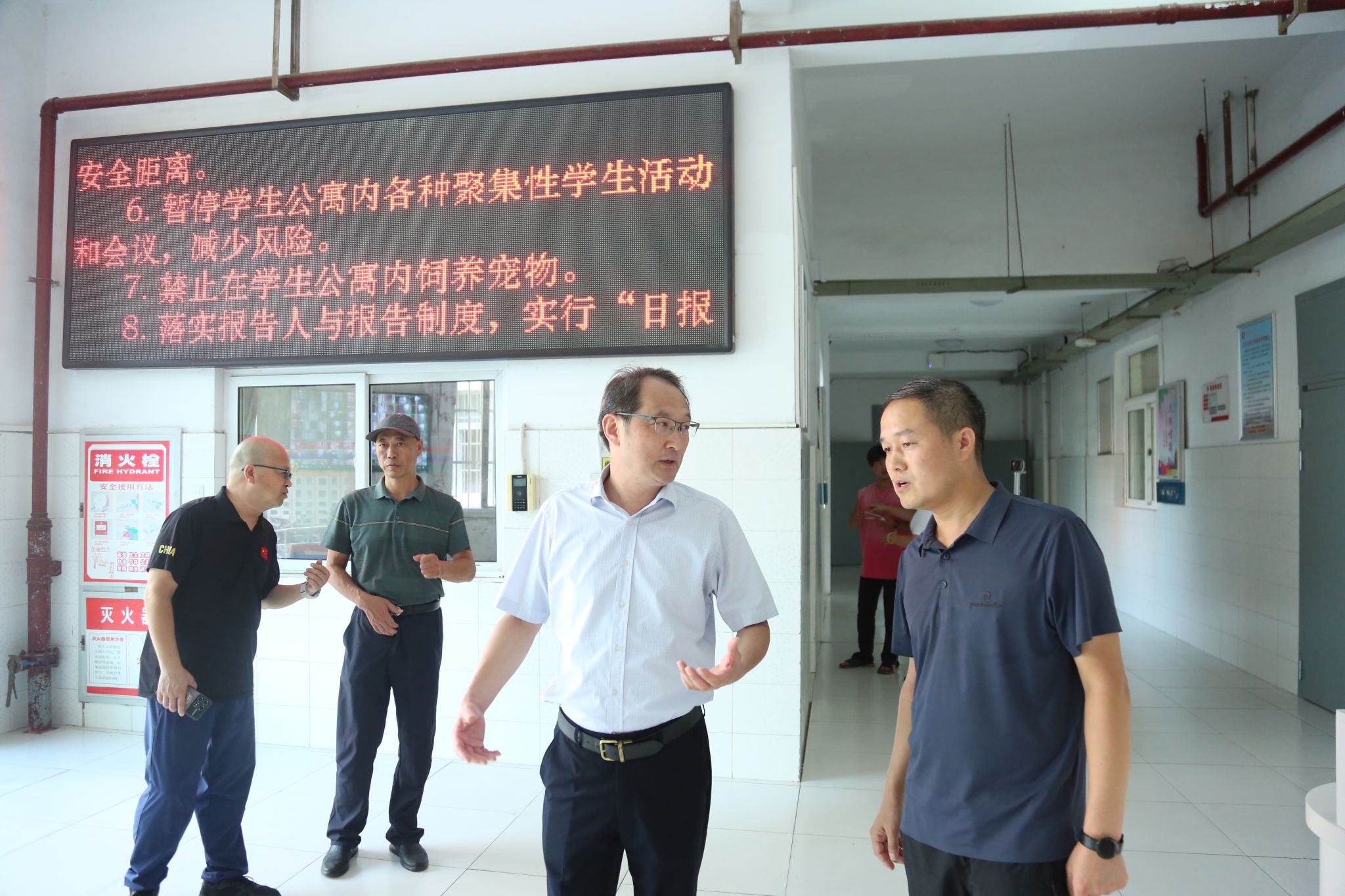 9月14日下午,校党委副书记、校长许雪峰带队开展校园安全隐患整改落实检查工作,校党委委员、副校长胡凼参加检查,安全保卫处、后勤服务中心、总务处、办公室、食品与环境工程学院等部门主要负责同志陪同。