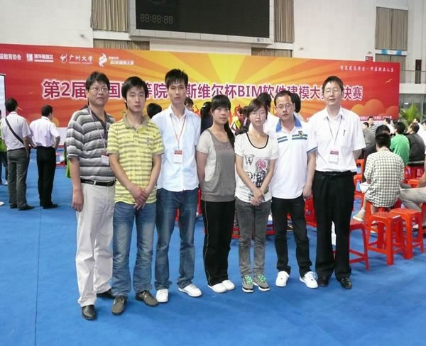 由我系造价专业学生杨璐、管盈、张晨辉、王曼、严小林组成 ,张国富为指导老师的"算量和清单计价(only one)"学院竞赛代表队,在第二届全国斯维尔杯建筑BIM软件建模总决赛-------三维算量和清单计价专项赛中,喜获二等奖,在全国排名第四名,与第三名(一等奖)仅差一分。其它项目虽然没有报名参加,但在比赛这二天里,他们也都积极参与、认真对待,经过坚苦的鏖战,又取得了全能三等奖。 这是我系工程造价专业教学成果的展示,教学实力的又一体现。