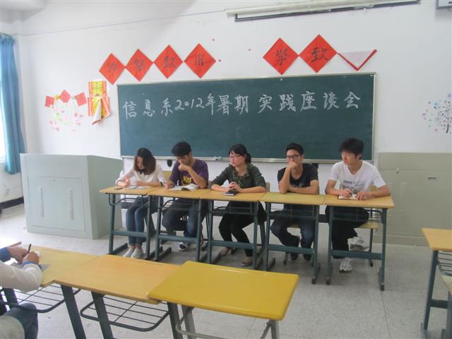 2012年9月13日中午,信息工程系团总支举行了2012年暑期社会实践总结座谈会,团总支书记、部分团学干以及各班级学生代表参加了本次座谈。同学们根据自己的亲身经历畅所欲言,分享了暑期实践的喜悦和汗水,收获与付出。