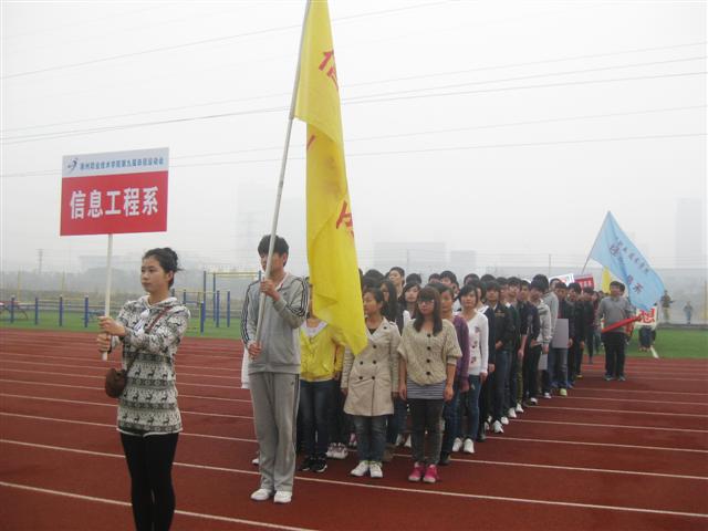 为确保第九届田径运动会的顺利进行,新葡的京官网于2012年10月26日下午在体育场举行了运动会第一次彩排活动。信息工程系200余名同学分别参与了系部方阵、系部展示、校歌合唱、广播操比赛和其他各类表演项目。