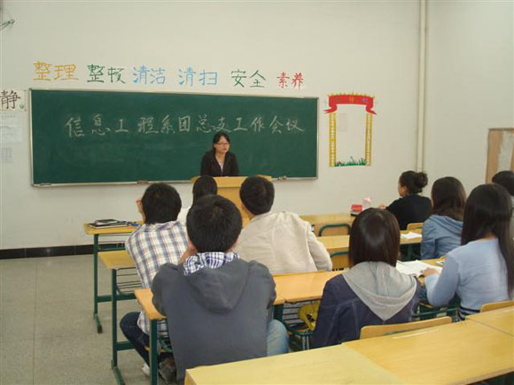 2010年10月14日,我系团总支召开团干工作会议,会上团总支书记杨阳老师传达了院团委的若干指示和近期工作安排的相关通知,并向支部书记发放了新的团支部工作手册,要求团干仍然秉持"快干","干成","干好"的工作理念,扎扎实实的做好本学期我系的共青团工作。