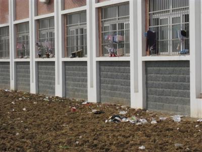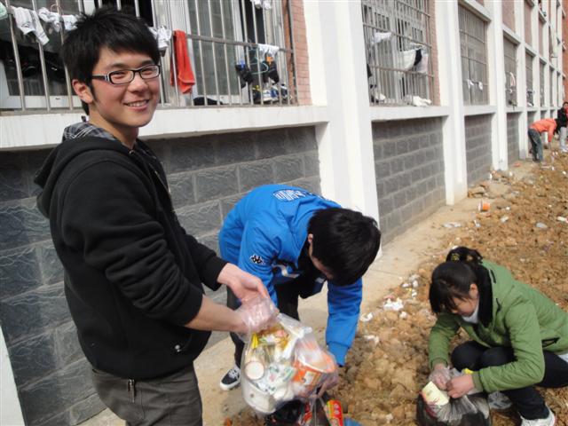 死角地带很多,学生们在认真清理