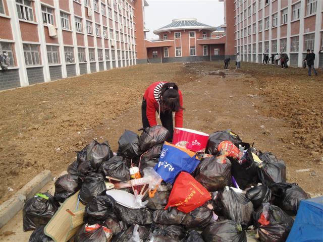 2011年3月23日下午两点半,在信息系党总支的安排部署下,我系团总支带领10级15、16期党校80余名学员进行了义务清扫校园活动。团总支书记杨阳老师带领全体同学对9号楼、10号楼周围进行了勘察,然后将同学们分成小组“围剿”垃圾。