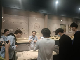 滁州博物馆是皖东地区最大的博物馆,同学们先后参观了一层的《襟江带淮 名山秀水——滁州自然风物陈列》和二层的《风云江淮 诗咏琅琊——滁州历史文化陈列》基本陈列,通过认真观摩和讲解员的详细讲解,深入了解了滁州市深厚的历史文化底蕴,近距离领略了滁州的独特魅力。在现场,老师们采用互动交流、现场讲解的方式开展实践教学,引导同学们结合参观内容,理解消化《思想与创新》《创意组合创作》等文化创意设计专题课程知识。同学们积极配合,就自己的所学所观所感开展热烈的交流探讨。