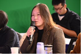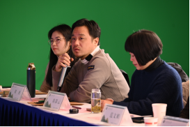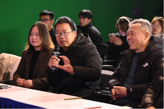 随后进入作品汇报和点评环节。学生们主要陈述毕设创意构想、创作背景、主要制作过程、遇到的问题及收获、作品总结等。李平权点评学生作品时特别指出,数字媒体技术成为了连接传统民族文化与现代艺术之间沟通的桥梁,学生们在毕设项目的创造过程中,要根植情怀,了解、体会并热爱民族文化艺术,利用技术手段创造富有文化底蕴的现代艺术作品。