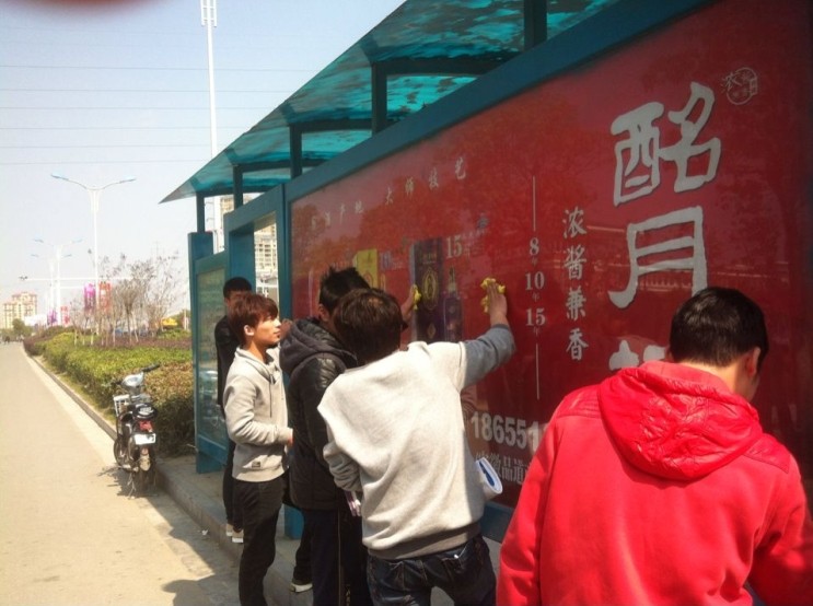 中午十二点半,全体志愿者在德馨楼集合完毕,前往位于学校附近路段的公交站台。志愿者分成四个小组,每小组负责一个站点,来到各自分配的区域后,志愿者迅速投入到清扫工作中,有的耐心地去除小广告,有的卖力地擦拭站牌。每人前进一小步,社会进步一大步。