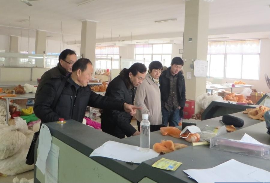 江院长在万隆实业有限公司毛绒玩具生产车间调研