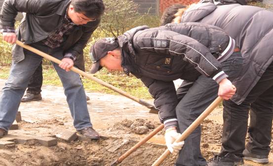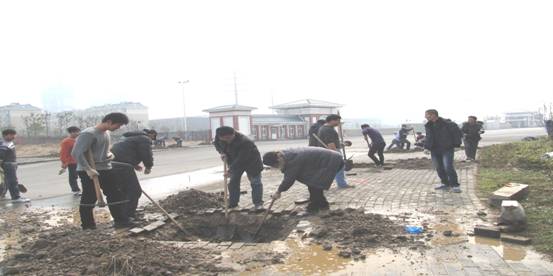 三月六日上午九时左右,系党总支书记陈震带领志愿者二十余人,迎着春风,踏着芬芳,参加美化校园义务植树活动。大家分工合作,有的挖坑、有的运土、有的负责搬运器材……热闹的场面温馨而快乐。