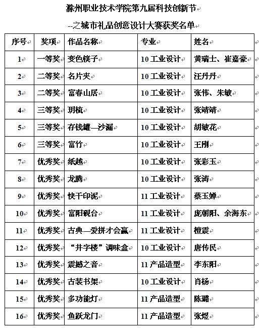 此次竞赛,共收集学生作品40余件,经过评委们认真、细致的评选,共评选出16幅入围作品,并会商、讨论,分别遴选出一等奖1名,二等奖2名、三等奖3名及优秀奖10名。获奖作品将推荐参加全国城市礼品创意设计大赛,争取获得好成绩。